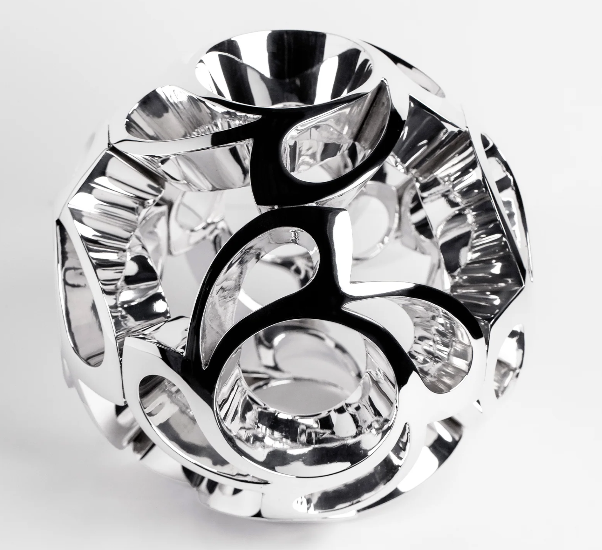 a fusion of the language of geometry, depth, and rhythm, classic elements in the artist’s work, with the language of silver from the Mexican luxury house.